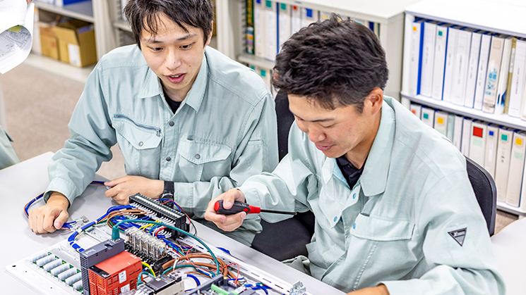 当社では、様々な分野の生産工場向け省力化・自動化機械を製作しており、構想、設計、加工、組立まで全て自社で行っています。リピート製品だけでなく、お客様の要望に応じたオーダーメイド機械にも対応し、1回限りの機械も多く手掛けています。そのため、毎日同じ作業の繰り返しではなく、経験を積む中で蓄積された知識や経験をどう活かすかが腕の見せ所となり、成長を実感しながら創造性を発揮する楽しさを味わうことができます。