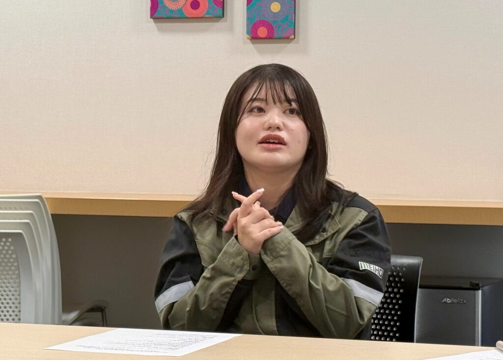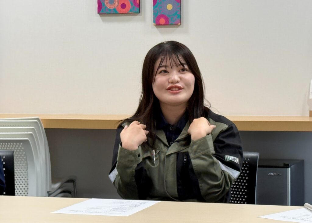 利高工業は、就活イベント「ローカルジョブコレクション(湖北地域の企業と直接話せる合同企業説明会)」で知りました。一人あたり6社まで企業説明を聞けるなかで、5社はあらかじめ決めていたのですが、残りの1枠をどうしようか迷っていたときに、ふらっと立ち寄ったのが利高工業でした。今振り返ると、運命的な出会いだったと思います。